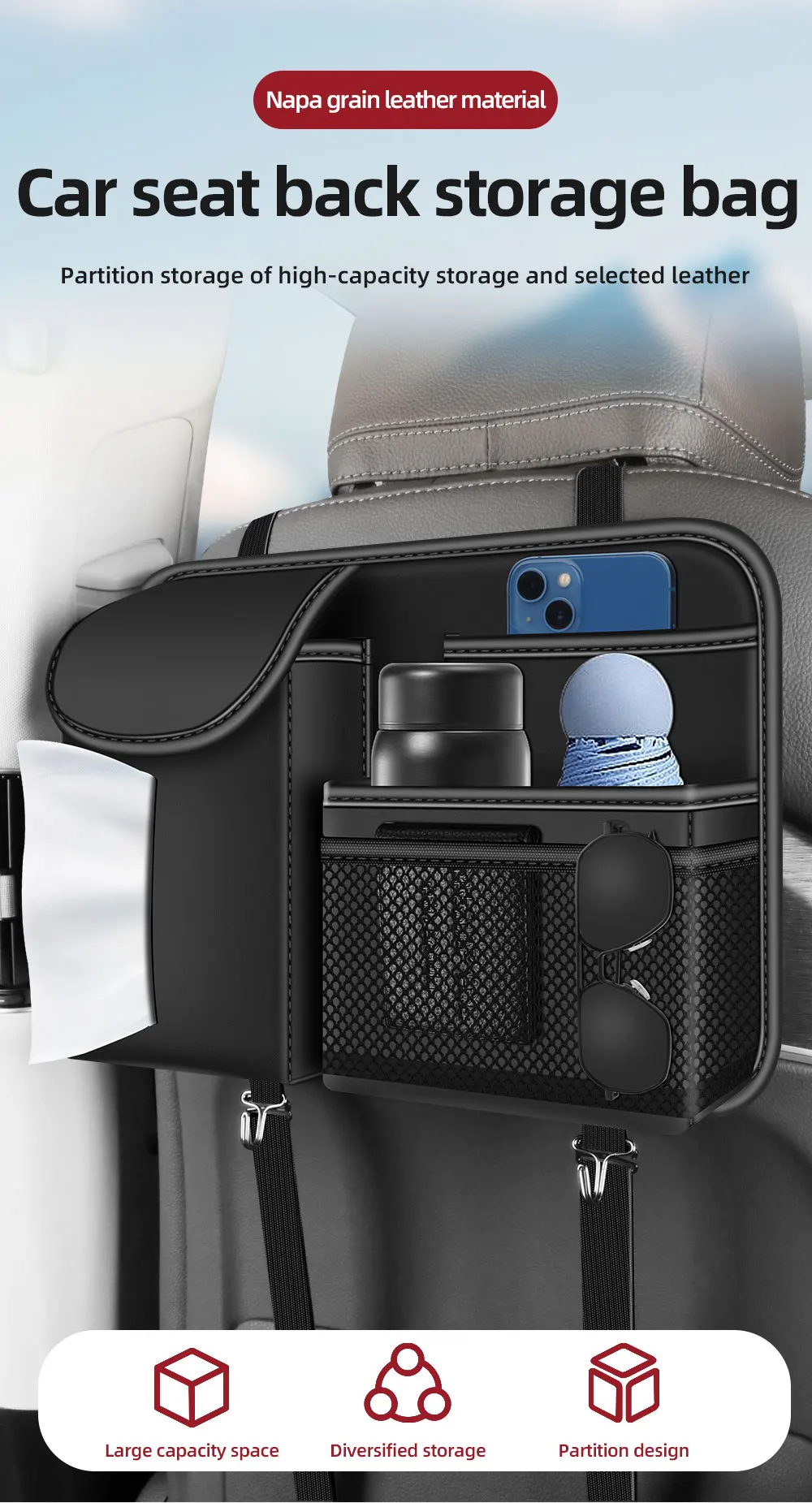 2025 New Car Seat back Storage Organizer Bag Universal Multifunction Storage Box stowing Tidying Pocket Auto styling Nappa
