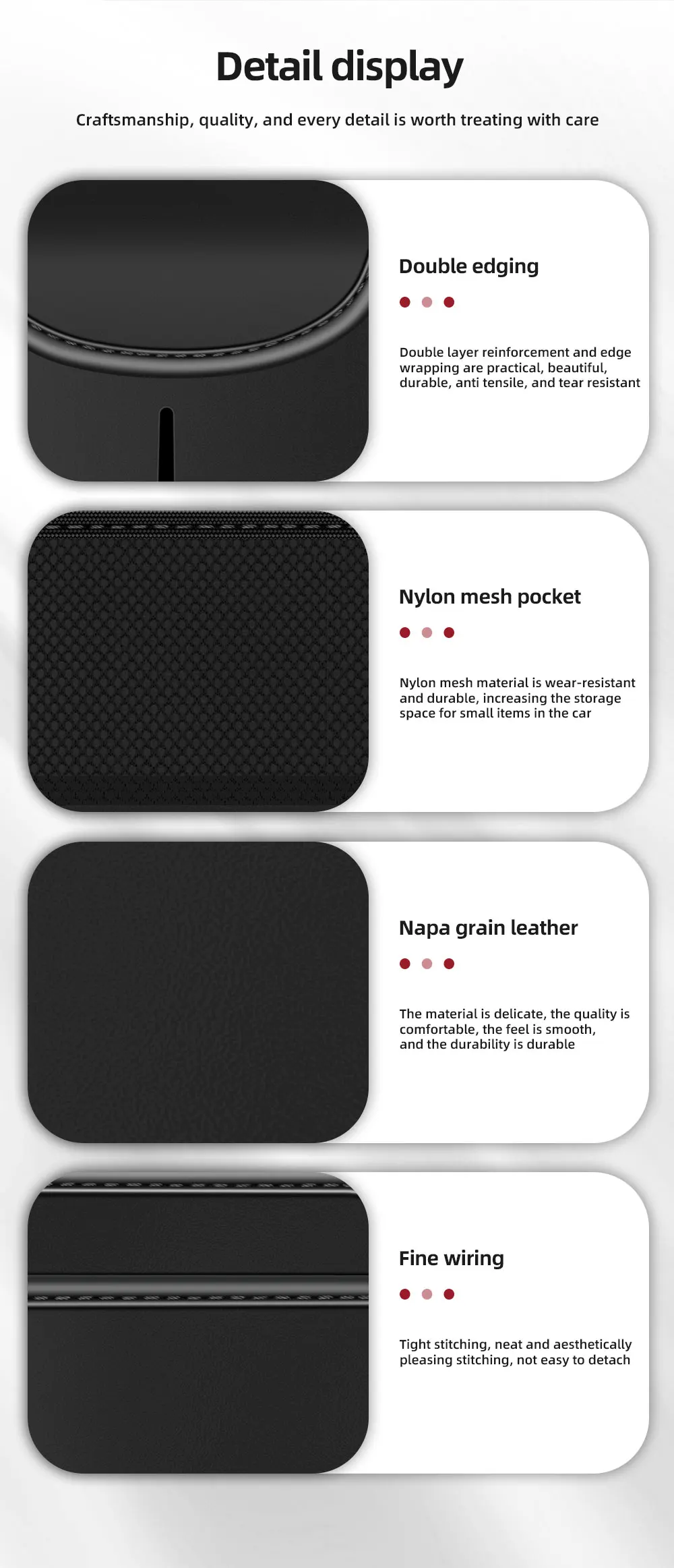 4. High quality material, made of high quality Nappa , easy to clean.
