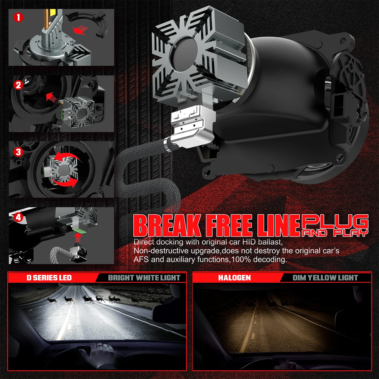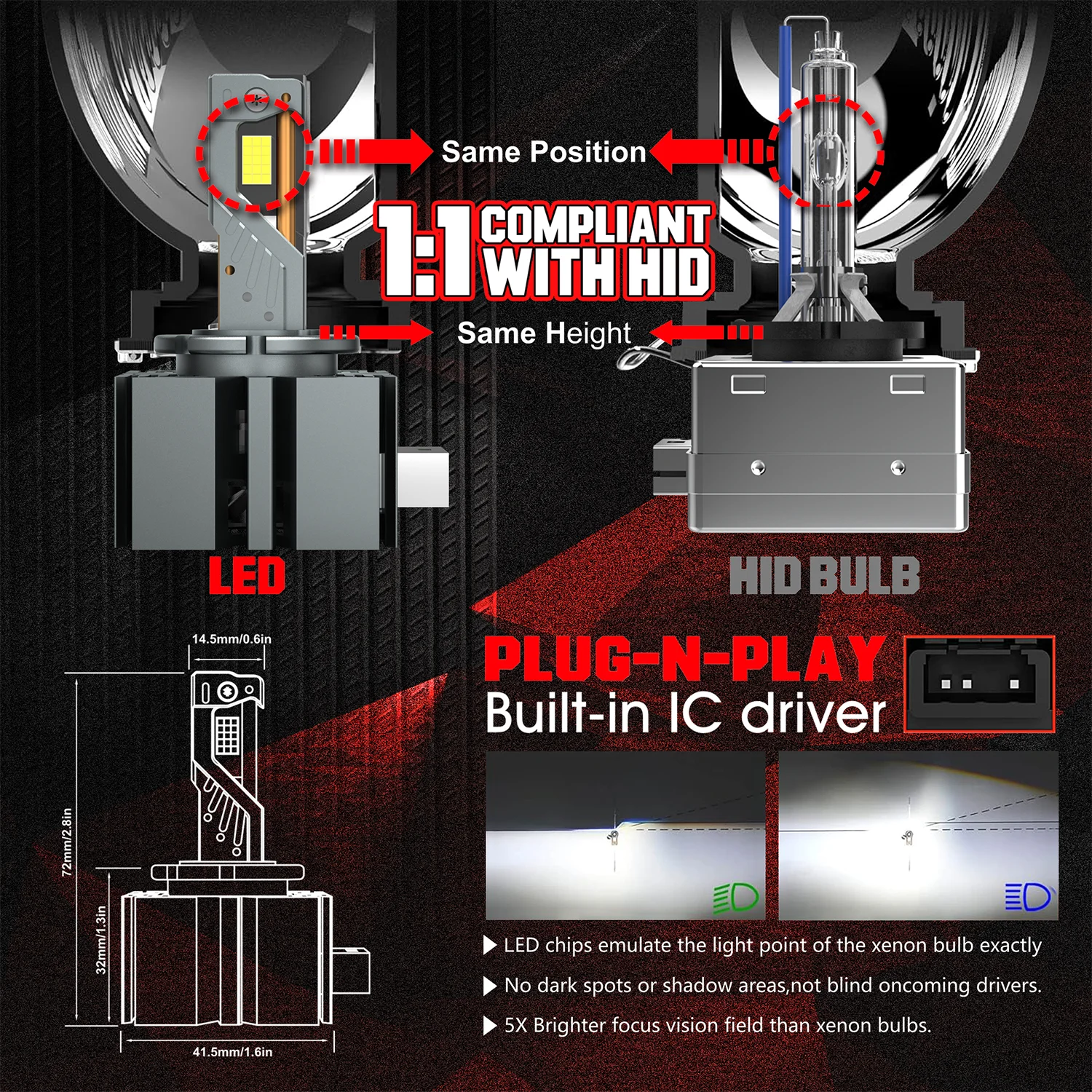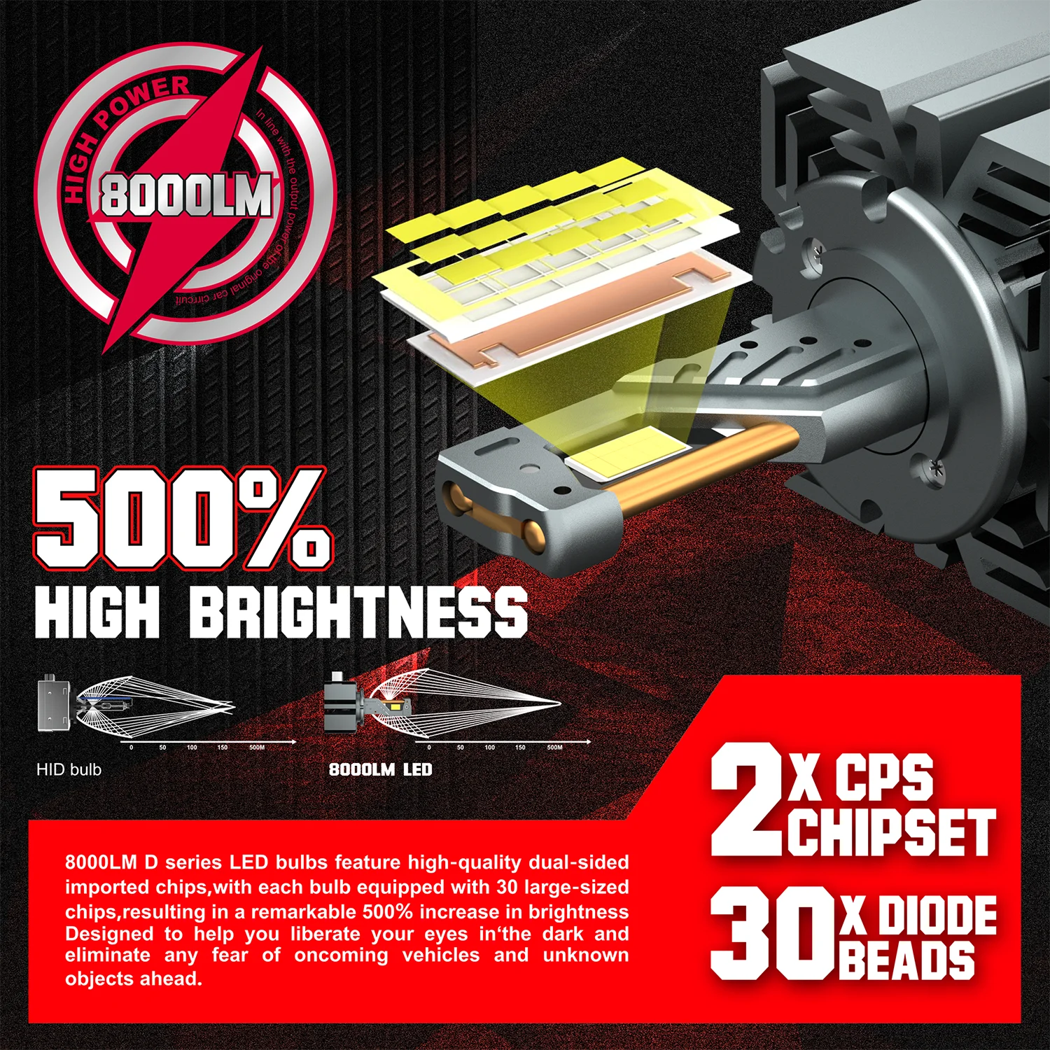 D SERIES D3S LED Headlights HID D1S D2S D2R D4S D4R D5S D8S Turbo LED 30000LM 6000K white light for Car with Xenon Bulb 12V 24V
